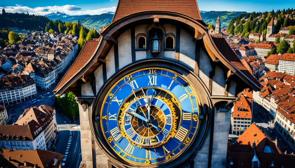 Standing 61 meters tall, the Zytglogge features an elaborate astronomical clock, installed in 1530, which displays not only the time but also the day, zodiac signs, and phases of the moon. The tower is famous for its animated mechanical figures, including a rooster, jester, and bears, which delight crowds with their hourly performances. This intricate system showcases the precision of Swiss clockmaking traditions.