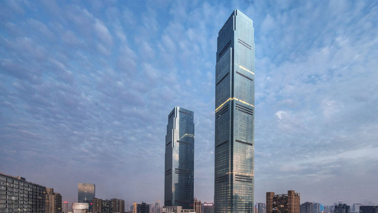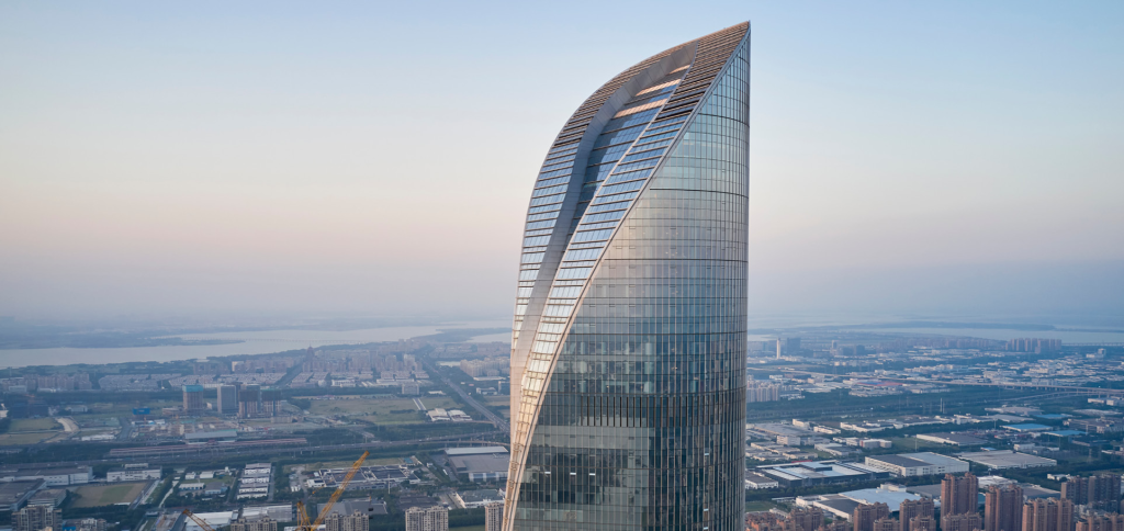The tower accommodates office spaces, luxury residences, and a hotel. Its structural design incorporates systems to withstand seismic risks and high winds, ensuring long-term safety and resilience. Sustainable technologies were also included, making it one of Wuhan’s most eco-friendly supertall buildings.
