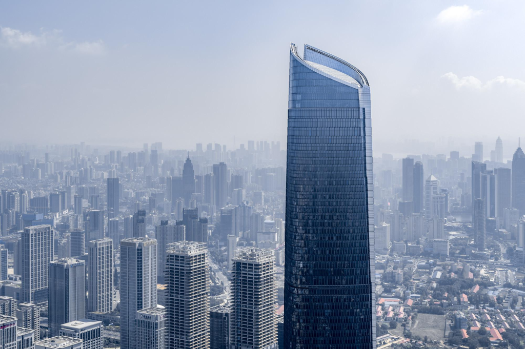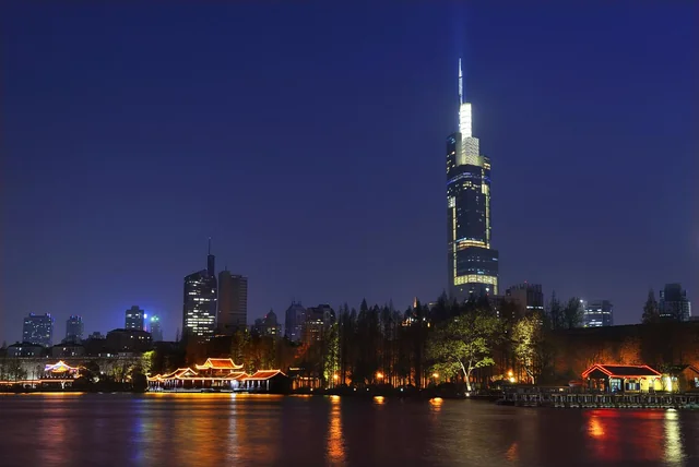 The skyscraper houses office spaces, a hotel, retail areas, and observation decks. Its Sky Lobby offers panoramic views of Nanjing and the Yangtze River, while the tower’s top floors feature restaurants and leisure facilities. The building was constructed with advanced structural systems to withstand seismic activity and ensure safety.