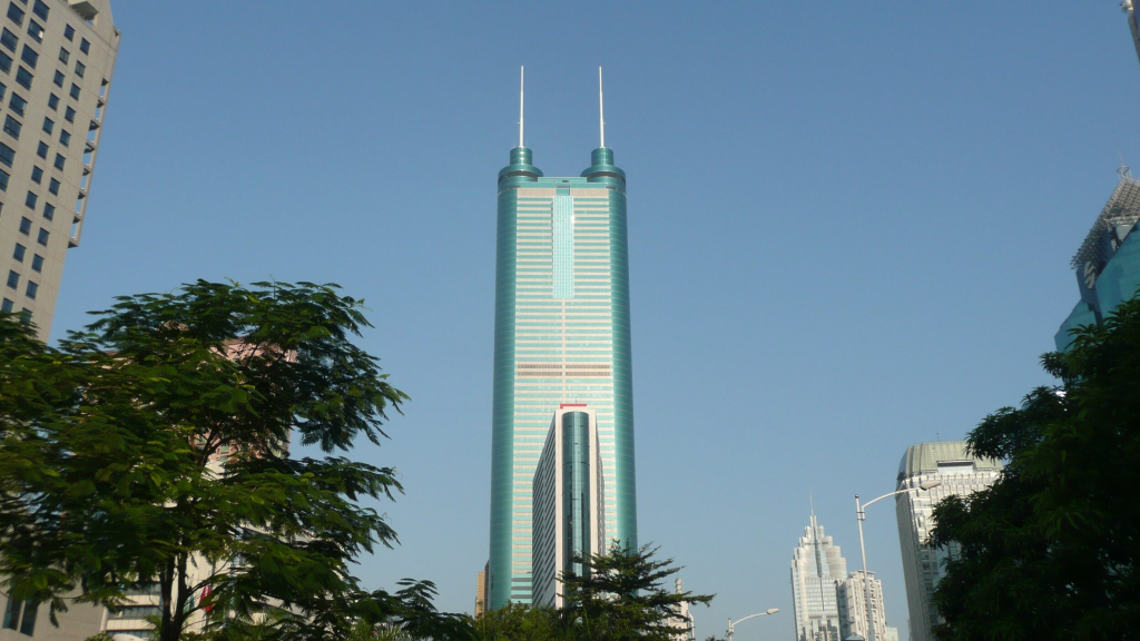 The tower contains office spaces, residential units, and retail facilities. It also features an observation deck that offers views of Shenzhen and its rapidly expanding urban landscape. Its structural design was considered pioneering at the time, pushing the boundaries of China’s skyscraper engineering in the 1990s.